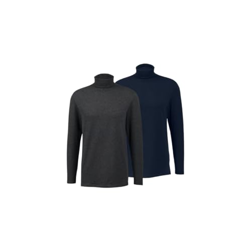 Generic - سويتر رجالي برقبة مرتفعة واكمام طويلة، مزيج من القطن، ازرق داكن ورمادي مرقش، EU 56/58 (XL)، قطعتين