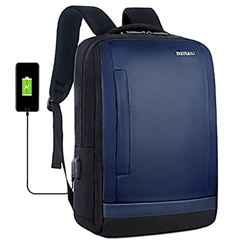 MEINAILI - شنطة ظهر لاب توب واسعة للسفر مزوده بمنفذ USB، من مينالي، ازرق
