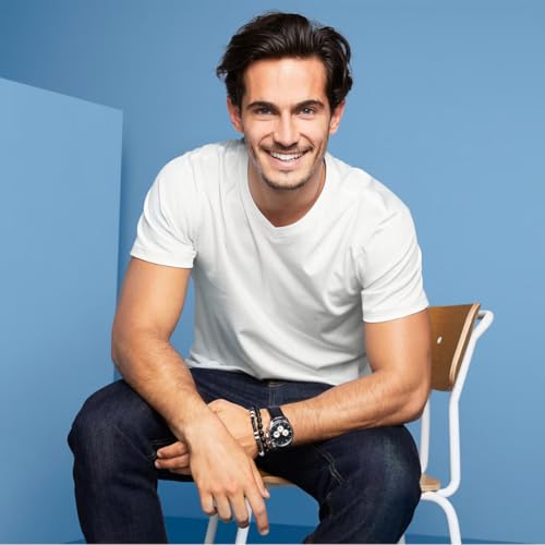 Generic - تي شيرت قطن برقبة على شكل حرف V واكمام قصيرة وقصة عادية، ابيض، مقاس EU 56/58 (XL)، قطعتين