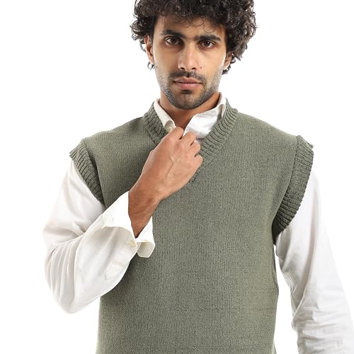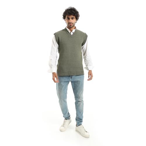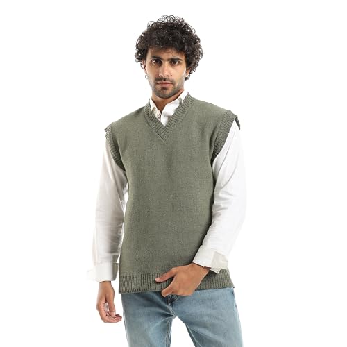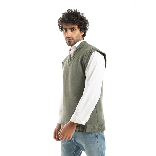 CAESAR - سيزر - فيست صوف بدون اكمام برقبة على شكل حرف V، اخضر، مقاس واحد يناسب الجميع