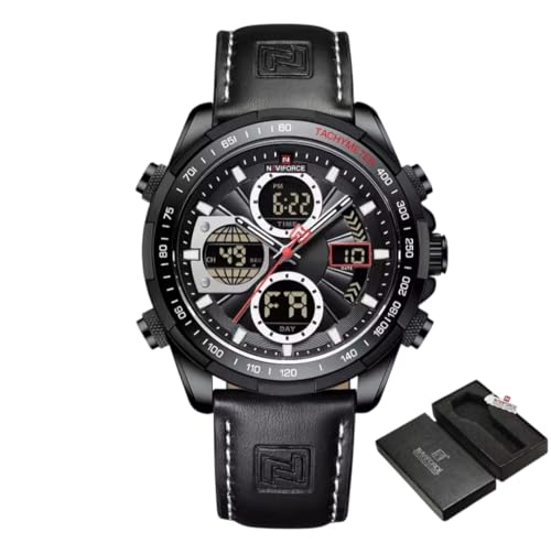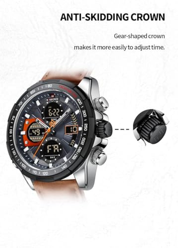 Generic - ساعة رجالى نافى فورس كونجراف، رقمي تناظري، بمينا أسود، بسوار برتقال