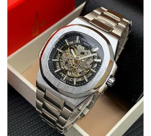 Generic - ساعة يد رجالي بحركة اتوماتيكية دقيقة، تتميز بمينا شفافة تُظهر حركة التروس الداخلية بوضوح مما يضيف لمسة من الفخامة والتفرّد مع العلبة الأصلية والضمان