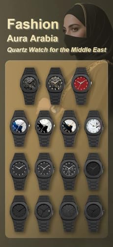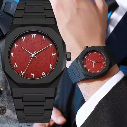 Generic - ساعة للرجال بمينا أسود و أحمر وسوار أسود بعرض أنالوج