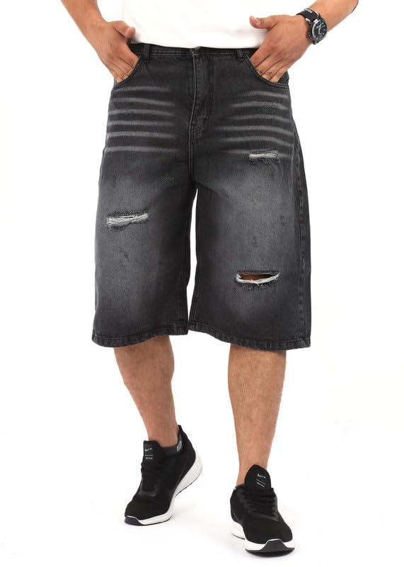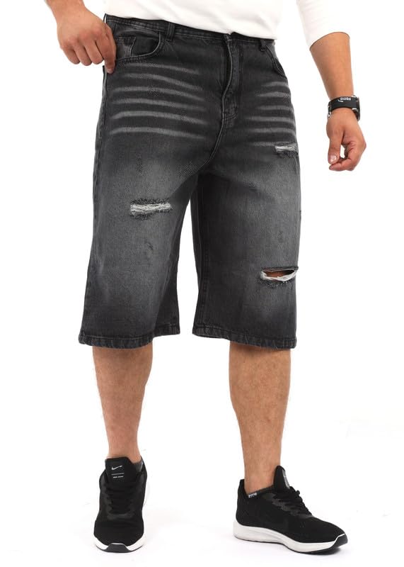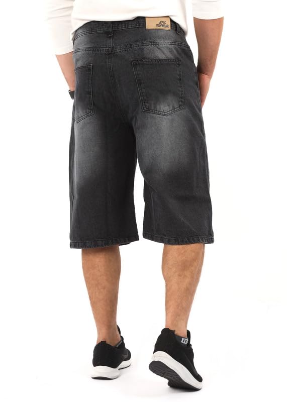 EGYWEAR - شورت جينز بأرجل واسعة للرجال، رمادي فاتح