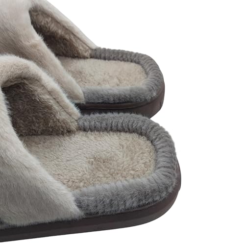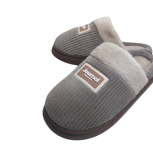 Generic - شبشب فرو شتوي للرجال، لون بني - بطانة مخملية دافئة، نعل مطاطي مضاد للانزلاق، مقاس 42/43