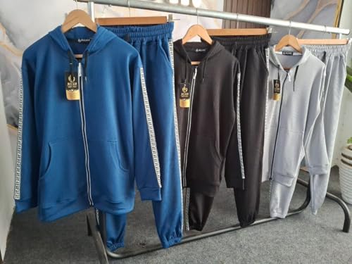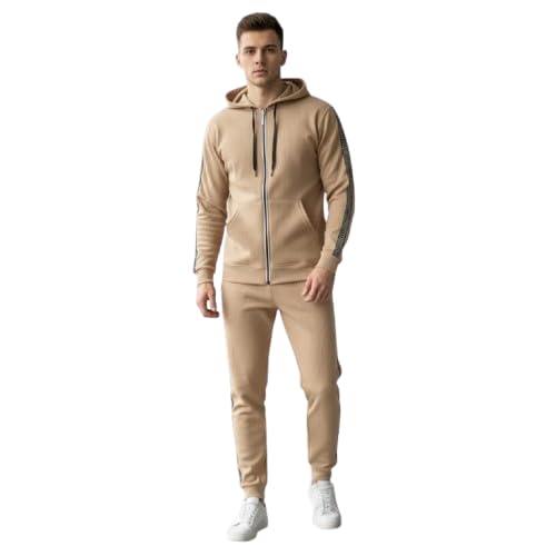 Generic - طقم رياضي مريح بشرائط جانبية رجالي شتوي بغطاء للرأس بسحاب طويل للهودي وبنطلون جوغر كاجوال (متوفر بعدة ألوان)