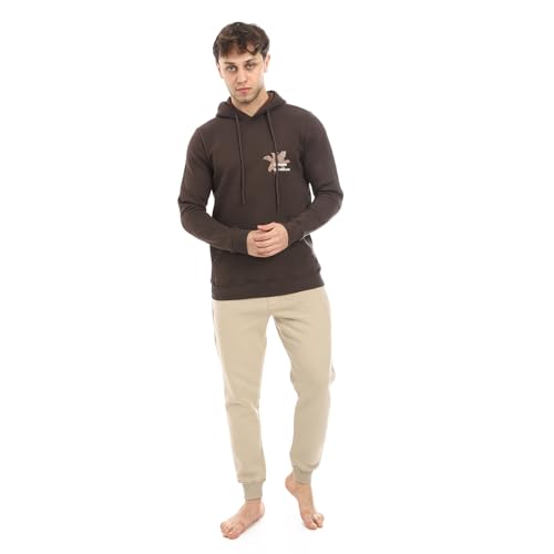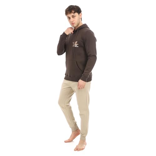 RED COTTON - بيجامة شتوية بغطاء للرأس للرجال - لون بني