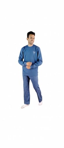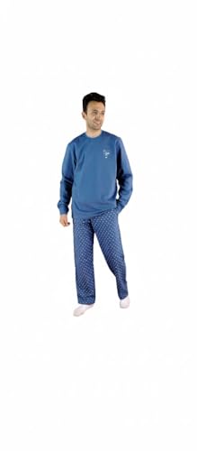 Jet (JET ) - بيجاما رجالي شتوي كم طويل و رقبة مستديرة سادة وبنطلون طويل منقوش - أزرق