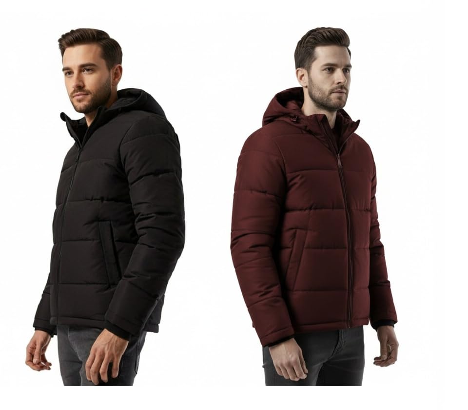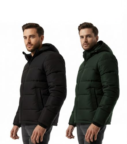 Generic - جاكيت شتوي مبطن ومعزول بغطاء للرأس وجيب للتخزين للطقس البارد للرجال