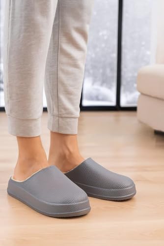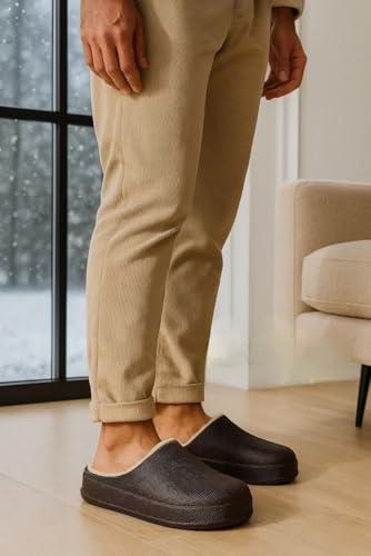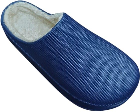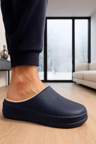 Generic - شبشب شتوي للرجال مريح للغاية مبطن بالفرو ناعم مانع للانزلاق دافئ للاستخدام الداخلي والخارجي خفيف الوزن وسهل الارتداء ومريح في المنزل (كحلي، 43)