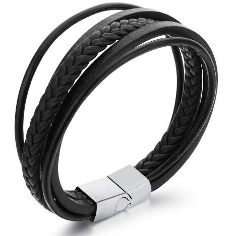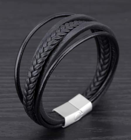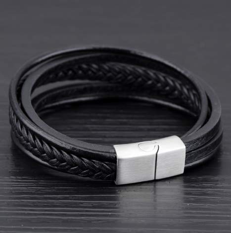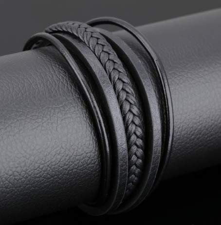 generic - أساور حلقية انيقة من الجلد الطبيعي للرجال والنساء (لون أسود)