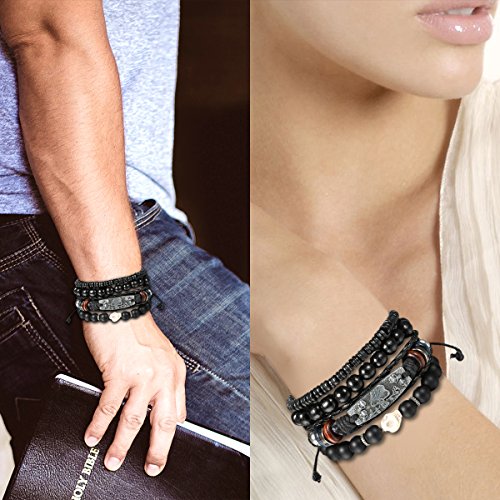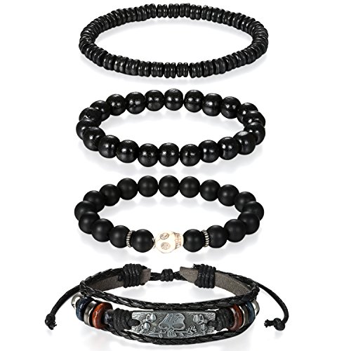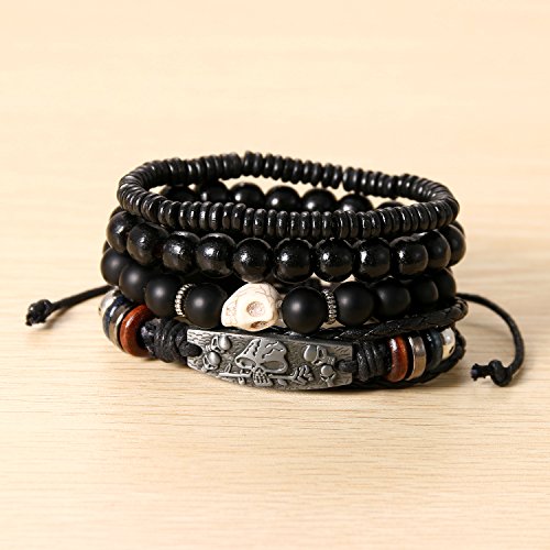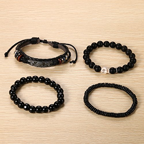 generic - مجموعة اساور عريضة كلاسيكية مصنوعة يدويا من الجلد المضفر للرجال والنساء، مصنوعة من خليط معدني وجلد وخشب، بدون حجر، للرجال والنساء