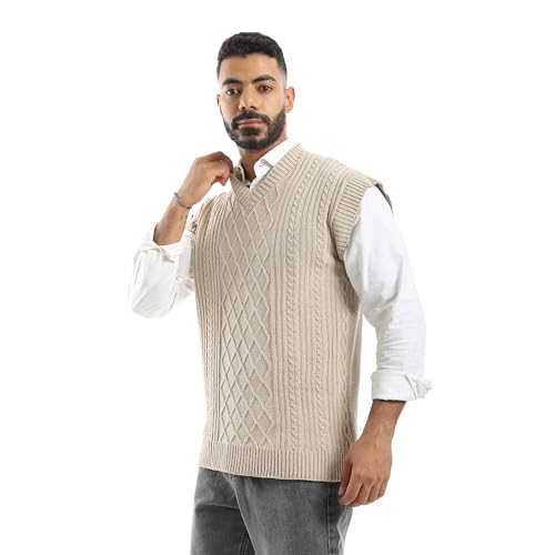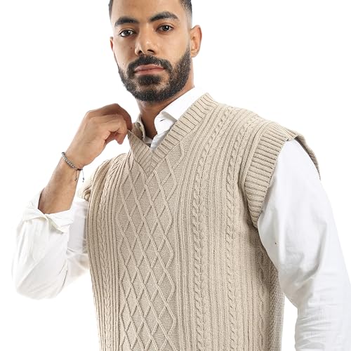 CAESAR - سيزر - فيست صوف للرجال برقبة على شكل حرف V، بيج، مقاس واحد يناسب الجميع