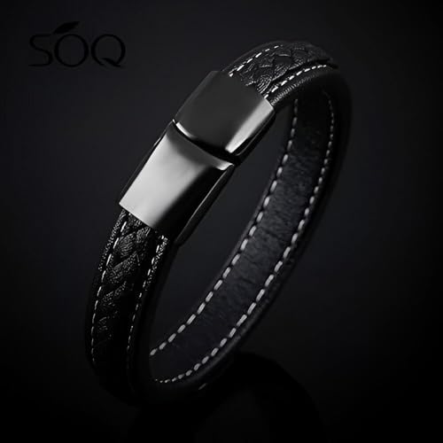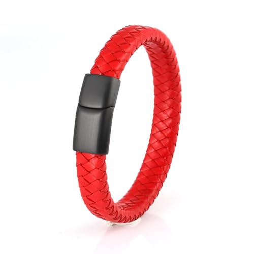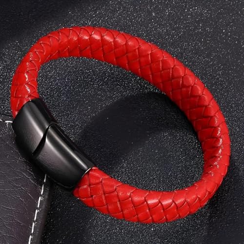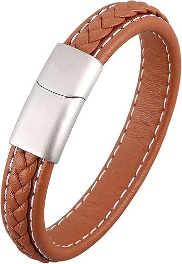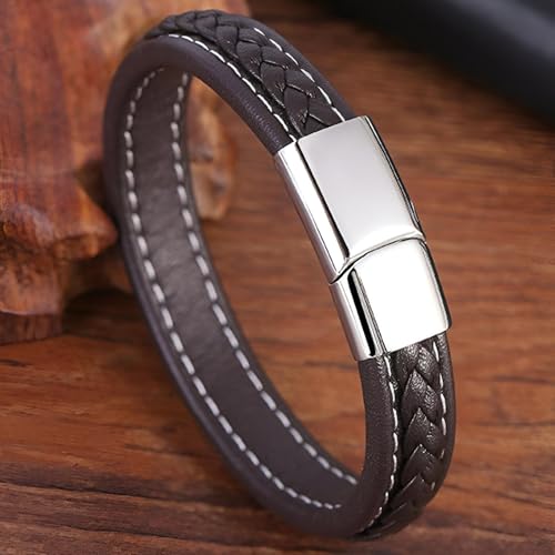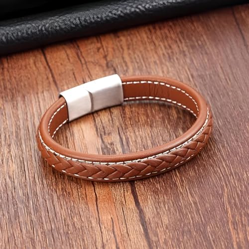 Generic - سوار معصم من جلد مضفر مع مشبك مغناطيسي بتصميم منسوج عتيق وطول قابل للتعديل 19 إلى 22 سم بلمسة نهائية من الفولاذ المقاوم للصدأ لمظهر متين للرجال