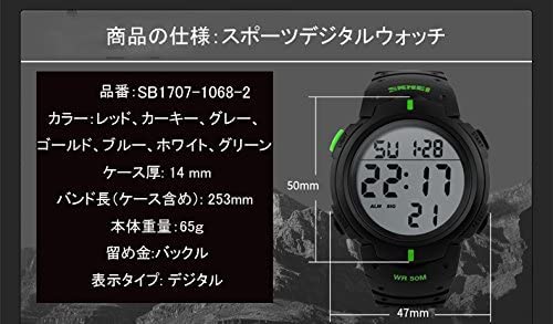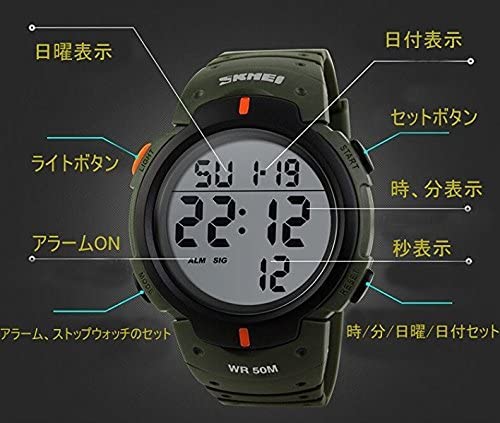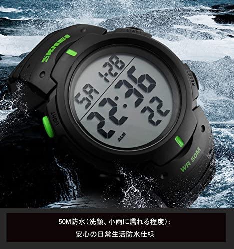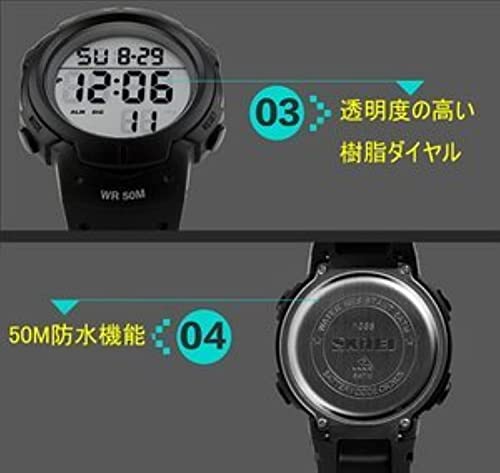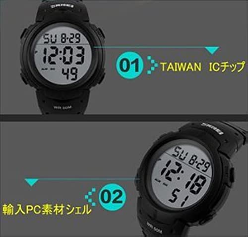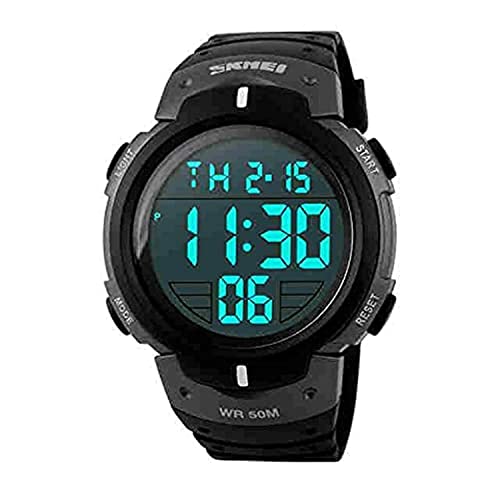 SKMEI - ساعة رياضية مقاومة للماء، بمينا أسود، بسوار أسود، للرجال