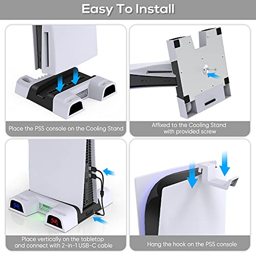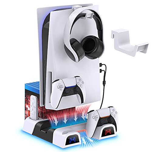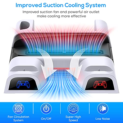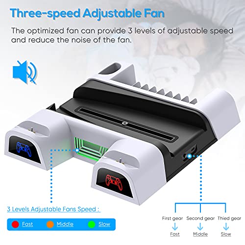 - مينيا مروحة تبريد بحامل مع قاعدة شحن مزدوجة لوحدة التحكم لجهاز بلاي ستيشن 5 ديكارد الرقمية، 3 مستويات سرعة للمعجبين، 10 فتحات ألعاب