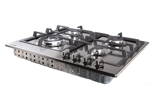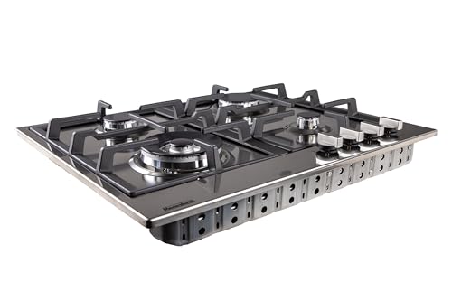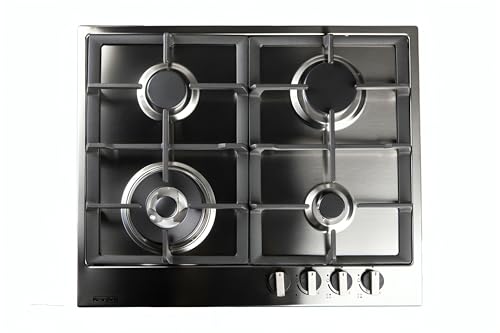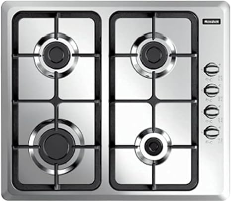 Meneghetti - بوتاجاز غاز مسطح مدمج من مينغيتي، 60 سم، 4 شعلات، حوامل مصبوبة، أمان كامل، إشعال ذاتي، بلد المنشأ ايطاليا، فولاذ مقاوم للصدأ- HMG60PBT4BF