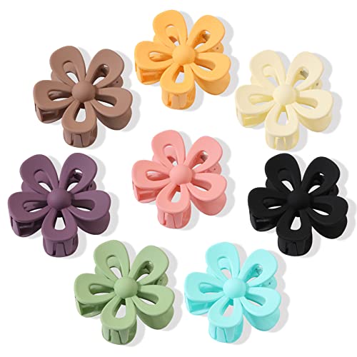 MENGCOOL - مشابك شعر على شكل زهرة من 8 قطع من مينجكول، مشابك شعر لطيفة للشعر المتوسط الكثيف، مشابك فك قوية من مادة ايه بي اس، مشابك شعر كبيرة غير قابلة للانزلاق للنساء والبنات (8 ألوان)