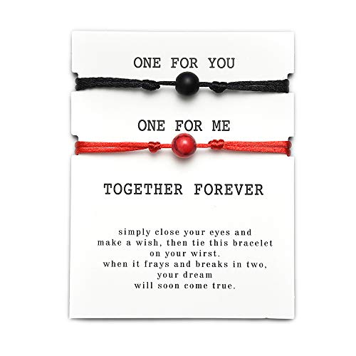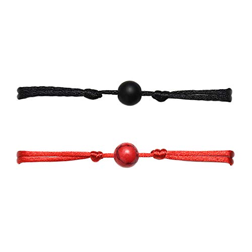MENGLINA - مجموعة اساور فينج شوي الصينية من حجر لافا طبيعي مينجلينا خرز بسوار احمر للزوجين المحظوظين يين يانج للرجال النساء قطعتين زجاج