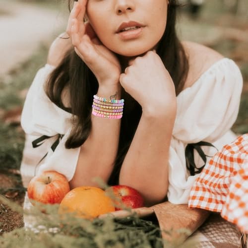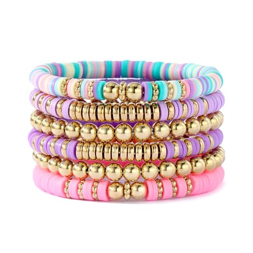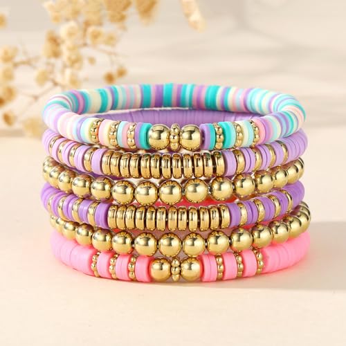 MengPa - مينغ با اساور خرز عصرية للنساء مجموعة بوهو من الصلصال مجوهرات الصداقة بلون ارجواني وذهبي 4738C