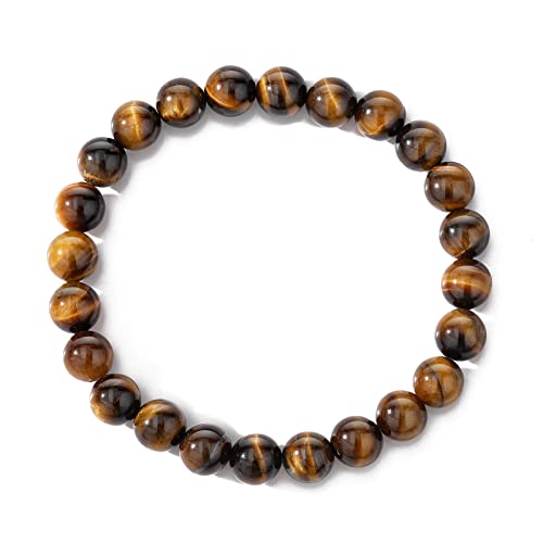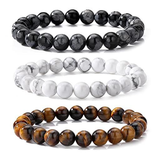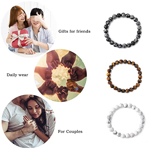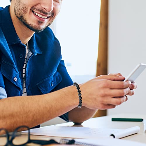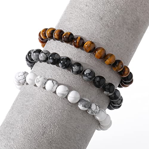 MengPa - مينغ با اساور خرز حجرية للرجال والنساء سوار قابل للتمدد مجوهرات عصرية ابيض ورمادي وبني US4544BCE 7 انش حجر لافا