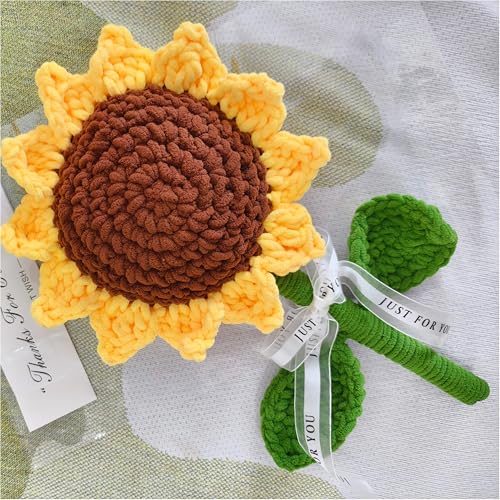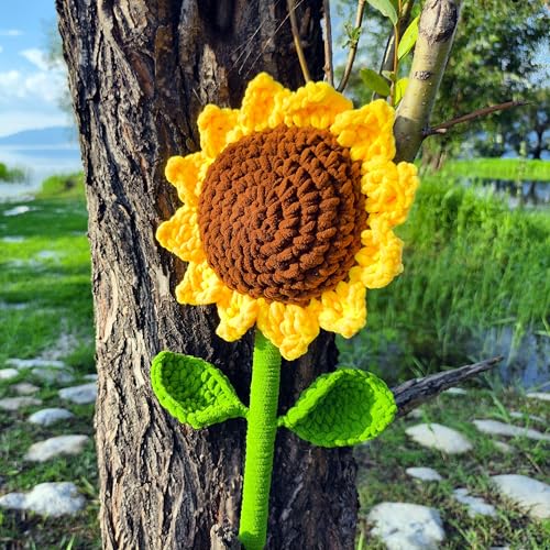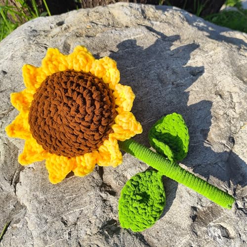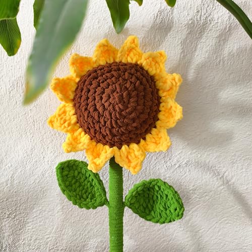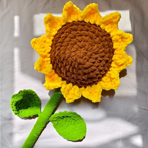 MengxFly - باقة زهور عباد الشمس من الكروشيه العملاق - زهور عباد الشمس المحبوكة يدويا كبيرة الحجم لهدية التخرج وديكور المنزل والزفاف وهدية للنساء والامهات واعياد الميلاد والذكرى السنوية (طول 15 انش