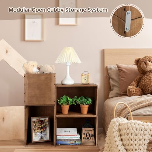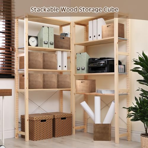 Menkxi - مينك شي سلال تخزين قابلة للتكديس للارفف والخزانة مقاس 14 × 10 × 10 انش، صناديق تخزين خشبية مزخرفة، صناديق خشبية مكعبة الشكل لتخزين الالعاب والكتب والملابس والمنزل والمكتب، 4 قطع (بني داكن)