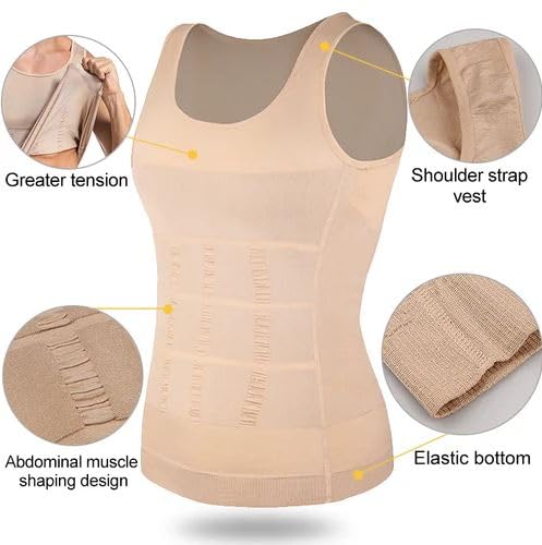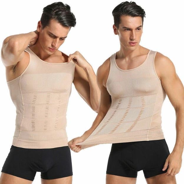 Generic - مشد بطن رجالي للتنحيف وشد البطن، قميص ضاغط بدون أكمام، بيج، تقنية سيمليس، مناسب للجيم وبعد العمليات الجراحية