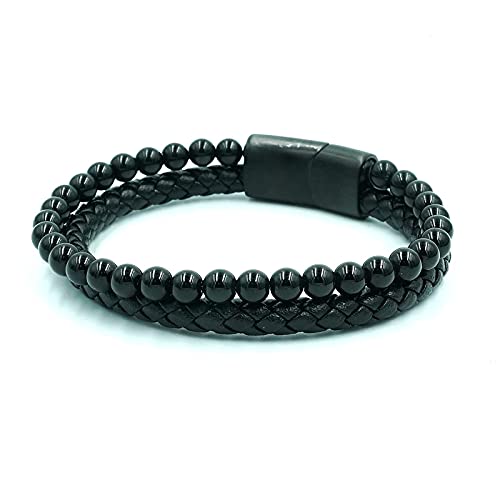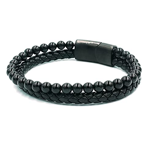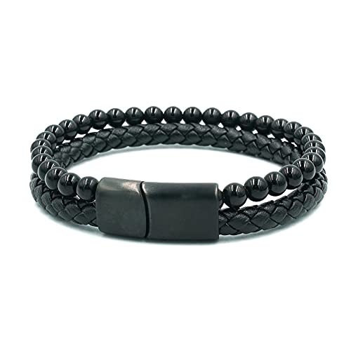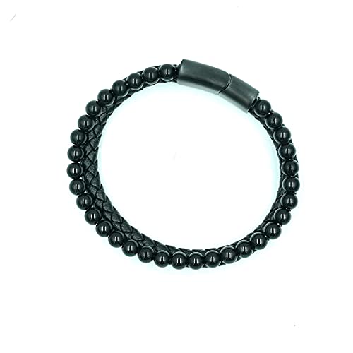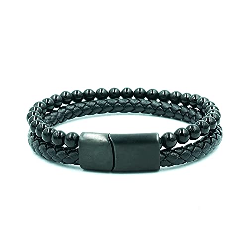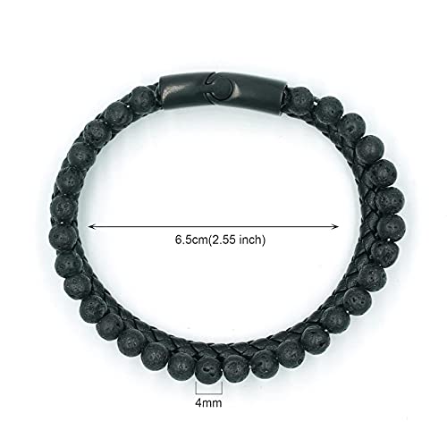 generic - سوار من الجلد الطبيعي المضفر مع مشبك مغناطيسي من الستانلس ستيل للرجال مصنوع من حجر اللافا وعين النمر وحجر البركاني الاسود مع مشبك مغناطيسي من الستانلس ستيل للرجال