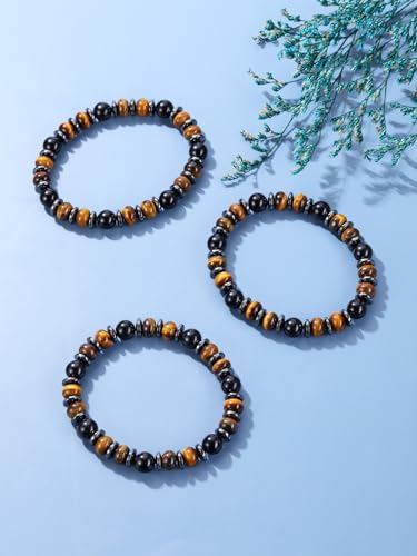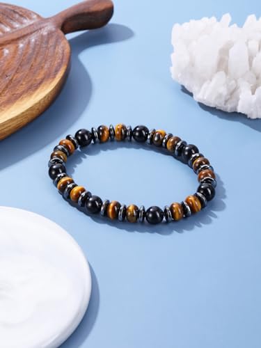 generic - اساور هدايا للرجال بتصميم عين النمر وحجر الزجاج البركاني الاسود والهيماتيت والكريستال والهيماتايت والشفاء والقلق، هدية للرجال في عيد الاب والصديق والزوج وعيد الحب وعيد الميلاد