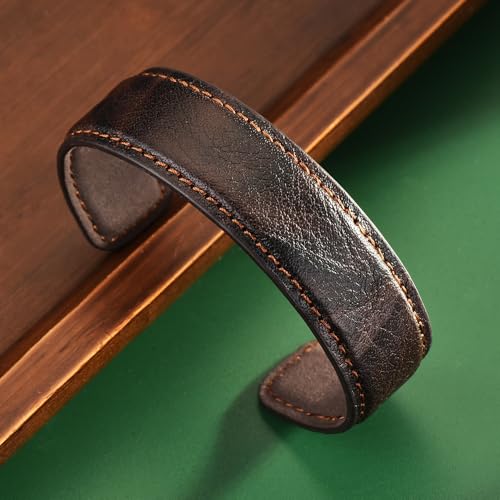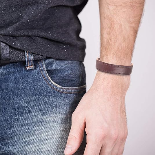 fashion mania - سوار من الجلد الطبيعي للرجال - سوار معصم مصنوع يدويًا من الجلد قابل للتعديل بنمط بانك