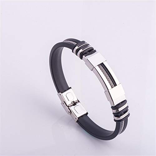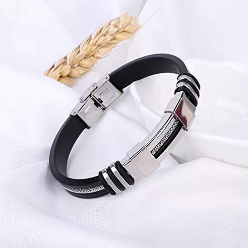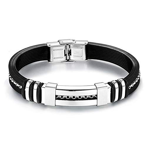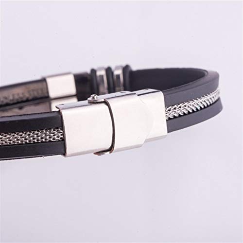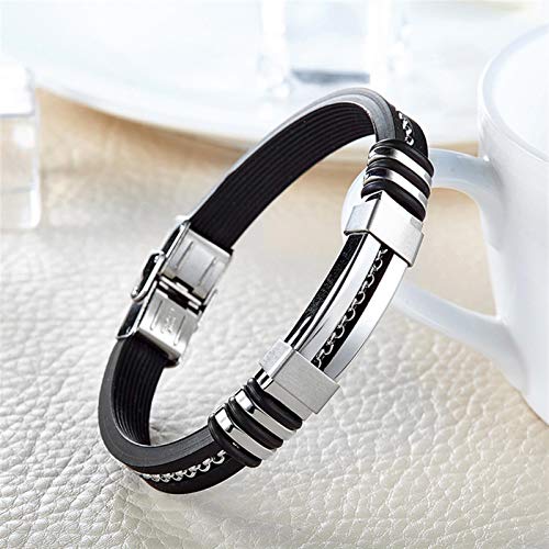 Generic - سوار جيتار جلد كول مع قطع ستانلس ستيل وحبال منسوجة للرجال من مينو، اسود، 8.26 بوصة, ستانلس ستيل جلد صناعي جلد خليط معدني صلب, زركونيا مكعب