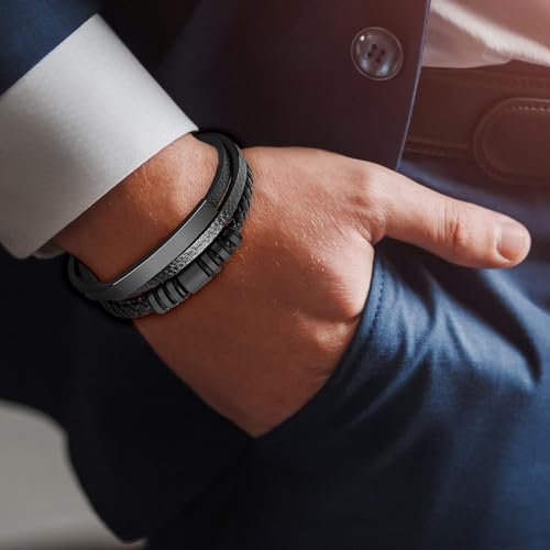 SHIEAGLELD - سوار رجالي مصنوع يدويا من الجلد بتصميم مجدول وبه مشبك مغناطيسي الستانلس ستيل كما انه مناسب لتقديمه كهدية