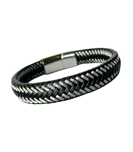 Generic - سوار جلدي للرجال، سوار جلدي عصري منسوج يدويا، اسود
