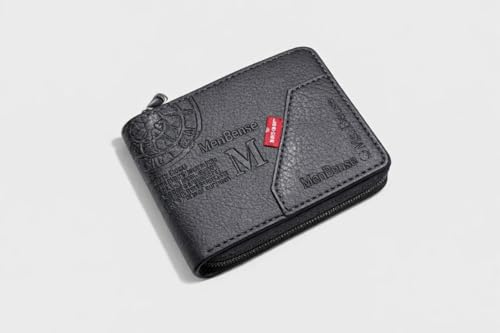 Generic - محفظة رجالي جلدية بسحاب، لحمل الكروت والأموال، مقاس 11.5×10×3 سم (اسود)