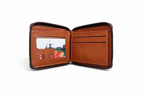 - تصميم أنيق: محفظة رجالية مصنوعة من الجلد بسحاب محيطي أنيق
