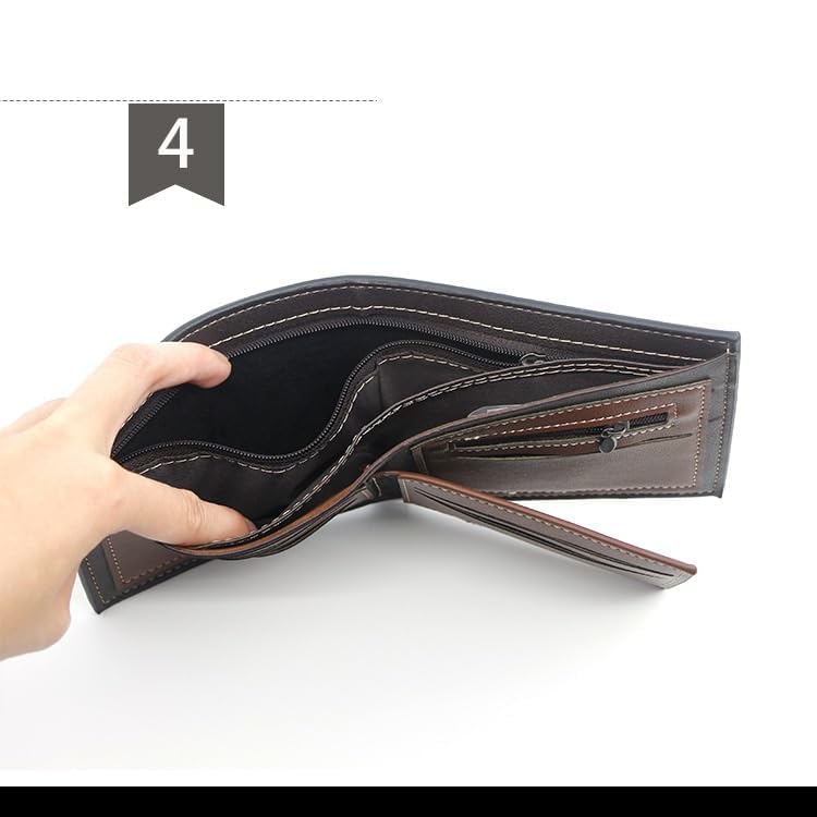 Generic - محفظة جلد مع سوستة للعملات المعدنية محافظ للرجال كروت و نقود 2 جيب Black