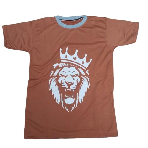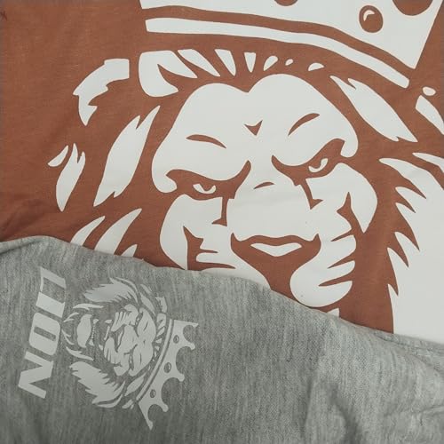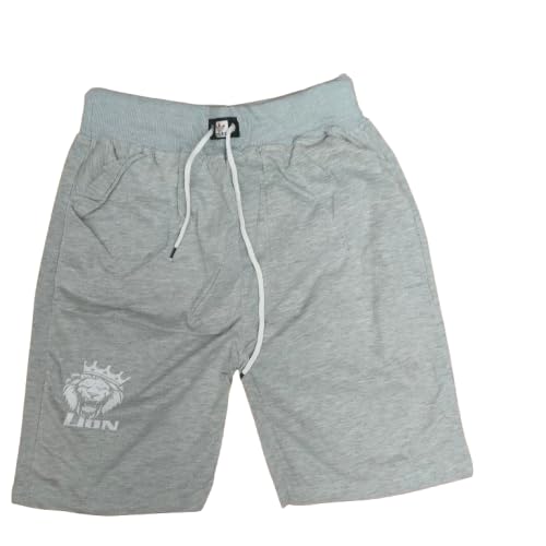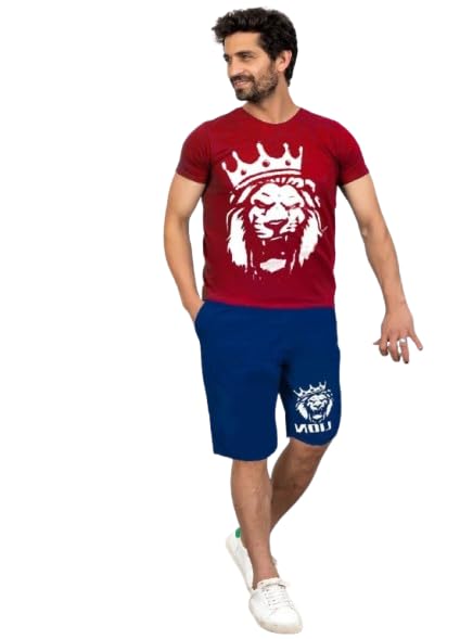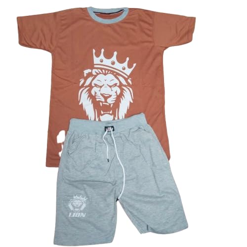 Generic - طقم بيجامه رجالي، تيشيرت طوبي بطباعة أسد وتاج، شورت رمادى، قطعتين - قطن 100% - مقاس M- موديل رقم #: 550-2531