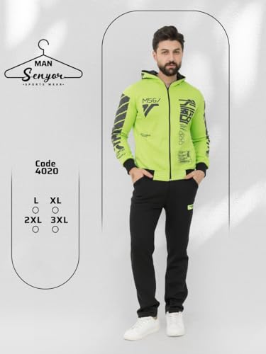 Senyora Khawatmi - بيجامة رجالي مكونّة من قطعتين بنطلون وجاكيت بأكمام وسوستة ترنج شتوي كاجوال للخروج وللنوادي وللمنزل (NO:4020)