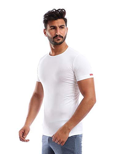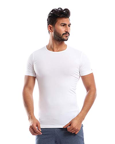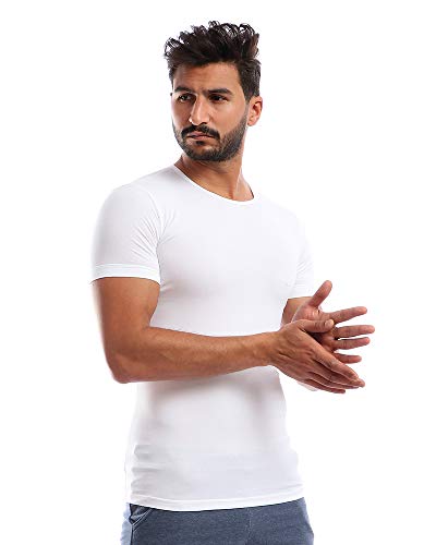 Cottonil - قميص الداخلي برقبة دائرية وباكمام قصيرة وبلون سادة للرجال - ابيض, أبيض, 3XL، من قطونيل