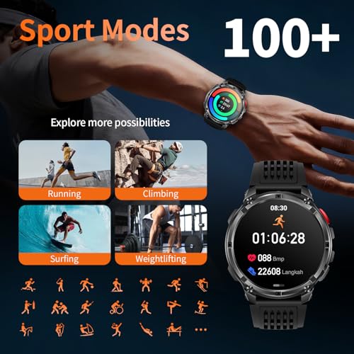 - 100+ Sports Modes & Multifunctional Men's Smartwatch: This sports smart watch is engineered to meet every demand of your active life. With over 100 specialized sports modes—from running and cycling to strength training—it accurately tracks calories, distance, and steps to help you crush your fitness goals. Beyond the workout, this versatile men's smart watch Android compatible device keeps you connected and in control. Manage music, check the weather, use voice commands, control your camera, and even enjoy two built-in mini-games to beat boredom anytime, anywhere. Durable, functional, and loaded with features—this mens smart watch is the true all-rounder for the modern man who moves.