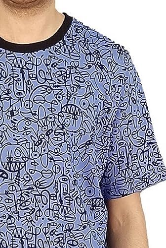 Jet (JET ) - بيجامة صيفي رجالي مطبوعة بأكمام قصيرة ورقبة روند بذرائر وبنطلون طويل - موف