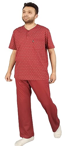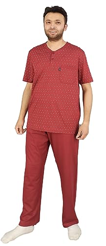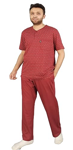 Jet (JET ) - بيجامة صيفي رجالي مطبوعة بأكمام قصيرة ورقبة روند بذرائر وبنطلون طويل -نبيتي
