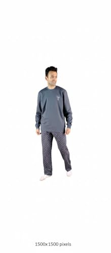 Jet (JET ) - بيجاما رجالي شتوي كم طويل و رقبة مستديرة سادة وبنطلون طويل منقوش - رمادي غامق