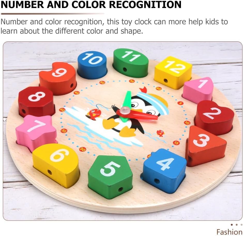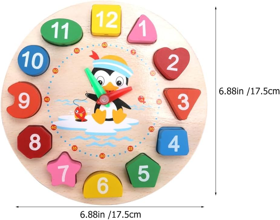 عام - لعبة تعليمية من مينتسوري، مصنوعة من الخشب، مناسبة للجنسين، تتميز بتصميم تعليمي ونمط البطريق. تساعد في تعلم الوقت وتمييز الأرقام والألوان والأشكال