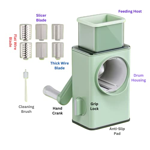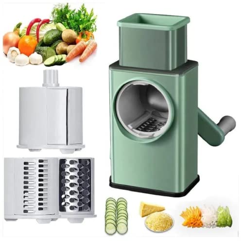 MEOMART - قطاعة خضروات متعددة الوظائف 3 في 1 من ميومارت، مبشرة جبن، قطاعة سلطة، قطاعة مندولين حلزونية، قطاعة فواكه سريعة، مفرمة خضروات، مطحنة مكسرات (أخضر فاتح)