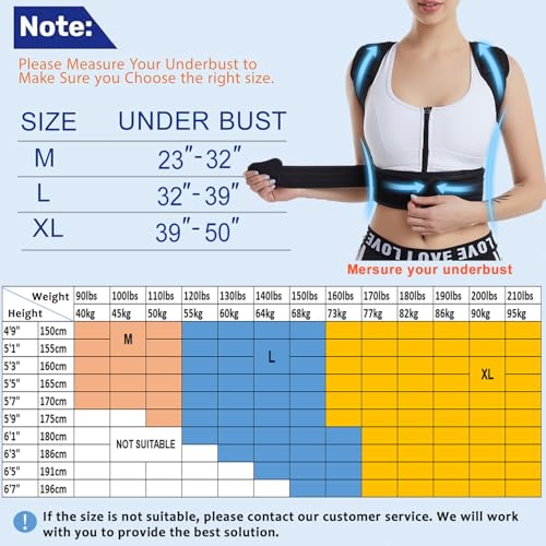 Mercase - مصحح وضعية الجسم بدعم للظهر قابل للتعديل للرجال والنساء من ميركيس، دعامة ظهر مريحة وجيدة التهوية لتخفيف الام الرقبة والظهر والكتفين (مقاس L تحت الصدر 32-39 بوصة)