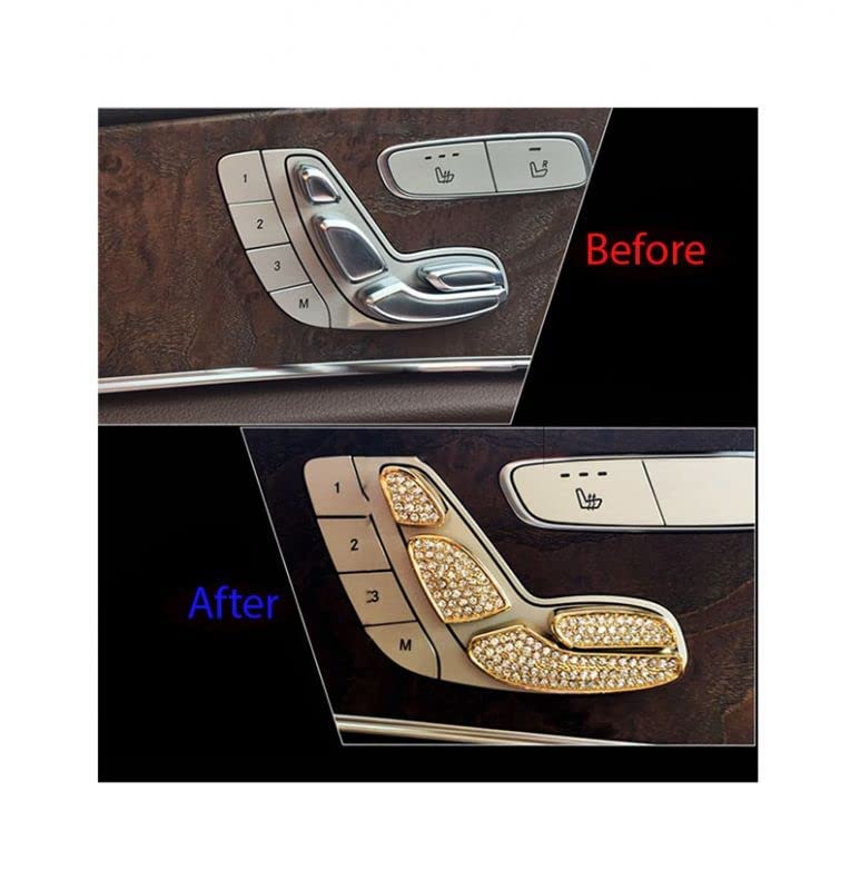 Generic - غطاء زر التحكم في مقعد السيارة متوافق مع سيارة مرسيدس الفئة سي اصدار 2016 الي 2019، مجموعة مكونة من 7 قطع، لون ذهبي