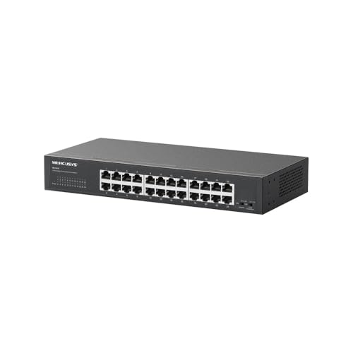 MERCUSYS - جهاز كمبيوتر مكتبي/راك ماونت MS124GS مزود بـ 24 منفذًا، منافذ جيجابت كاملة ودعم التفاوض التلقائي وMDI/MDIX ومنع الحلقات بالإضافة إلى وضع العزل وله هيكل معدني متين وتشغيل فوري من ميركوسيس