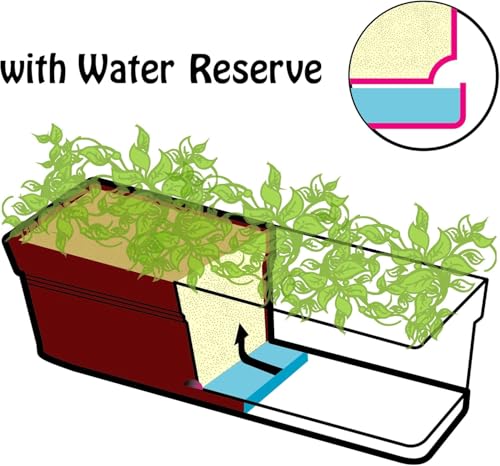 - النوع والتصميم: صندوق/أصيص زراعة مستطيل أو نافذة زرع (Window Box Planter). يتميز بتصميم كلاسيكي عملي يجعله مناسبًا للزراعة الداخلية والخارجية، وخاصة على حافة النوافذ أو الشرفات.
